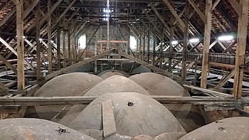 Das Gewölbe an sich erinnert an eine Art Mondlandschaft. Von hier oben werden das Kreuz, die Leuchter und auch der Tannenbaum über Stahlseilzüge gespannt. Über eine Ballustrade kann man rund um das Gewölbe gehen. ZU sehen ist das im folgenden