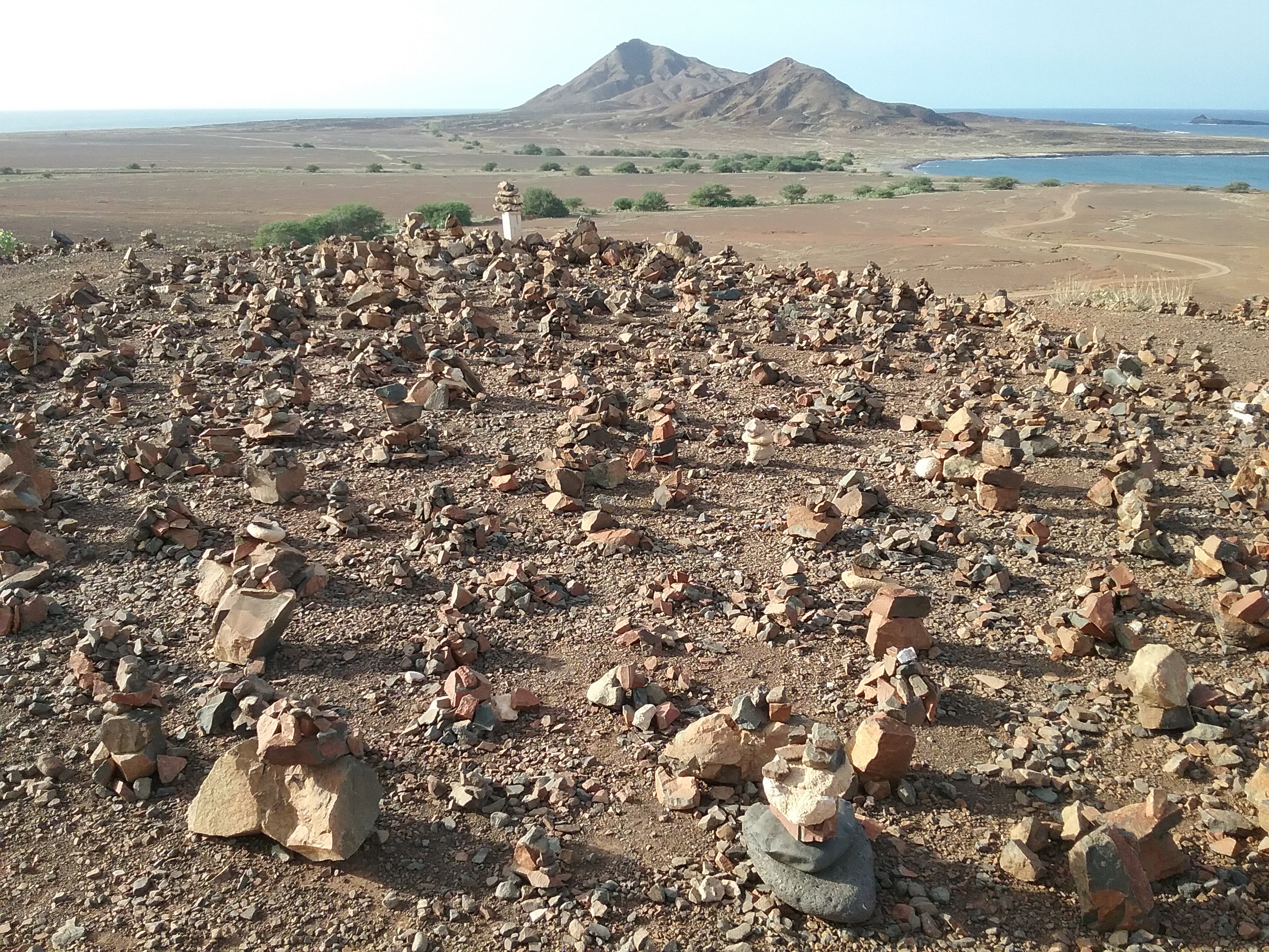 Auf der Inselrundfahrt, die aufgrund der Größe der Insel nur einen halben Tag dauerte, bekam man die Sehenswürdigkeiten der Insel präsentiert: Vorweg: Man muss das Thema Halbwüste mögen, Wälder, Hecken und Felder sucht man hier vergebens, eher Steine, Akazien, trockenes Gras, Sand.. Aber davon reichlich! Die Sehenswürdigkeiten möchte ich hier nicht aufzählen, eher noch von ein paar interessanten Eindrücken berichten. Die Aussicht in der Wüstenlandschaft war fantastisch und am Horizont war tatsächlich eine Fata Morgana zu sehen! Es sah aus wie Wasser, aber war doch nur eine Luftspiegelung.
