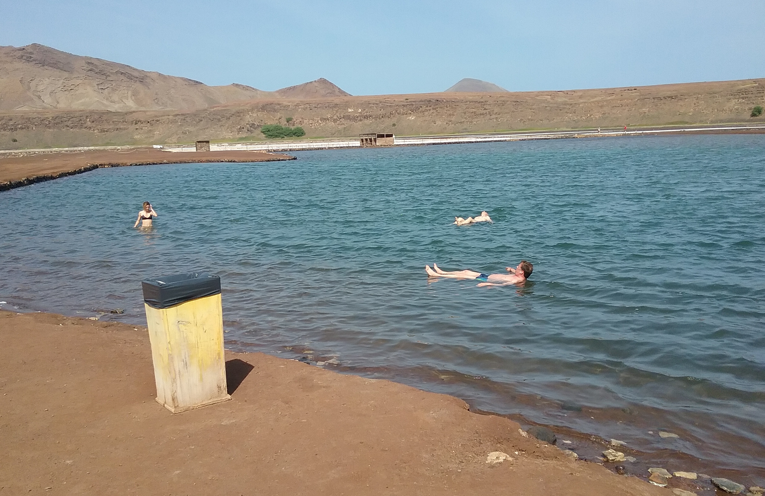 Touristisches Highlight war dann das Bad in einem Salzsee. Dieser diente einst der Salzgewinnung, einer der wenigen frühen Exportartikel der Insel. Diese Saline, die in einem erloschenem Vulkankrater liegt, ist so salzhaltig, dass man darauf schwimmt, ohne sich bewegen zu müssen. Der Effekt des Toten Meers und es funktioniert!
